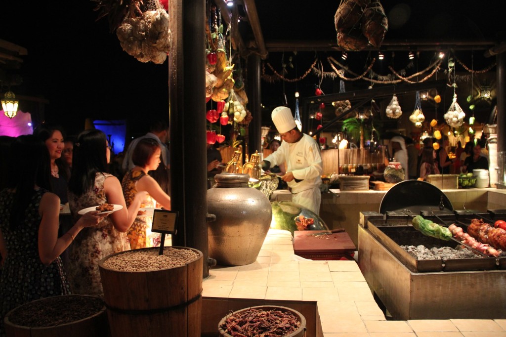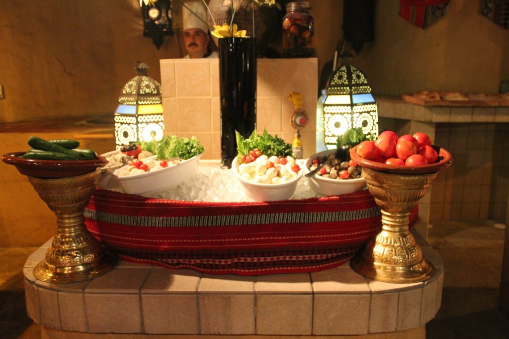 ร้านอาหารตกแต่งสไตล์พื้นเมือง แต่หรูหรา อาหารเป็นแบบ Buffet with live cooking มีหลายอย่างให้เลือก รวมทั้งขนม ของหวาน ผลไม้และไอศครีม แต่ราคานี้ยังไม่รวมเครื่องดื่มค่ะ โดยรวมอาหารอร่อยดีค่ะ โดยเฉพาะไก่ย่างอร่อยมาก มีข้าวหมกกับเนื้ออูฐ เนื้อแกะ แพะ ต้มซี่โครงแกะ คล้ายๆข้าวขาหมูก็มี แต่ไม่ใช่หมูค่ะเป็นแกะ ที่นี่ไม่ไม่เมนูเนื้อหมูค่ะ ผัด ทอด ปิ้ง ย่าง BBQ เนื้อต่างๆ สเต็กและอาหารทะเล เชฟจะปิ้งย่างกันสดๆให้เราทานเลยค่ะ ขาดอย่างเดียวไม่มีน้ำจิ้มรสเด็ดให้เลย ไม่งั้นคงอร่อยกว่านี้ค่ะ แต่แค่นี้หวานก็ทานจนพุงกางเลยค่ะ